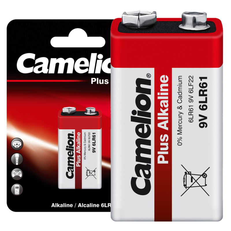 Щелочные батарейки для устройств с высоким энергопотреблением. ( Оптимальный выбор для всех случаев ) Батарейка Camelion 6LR61-BP1, напряжение 9В, емкость 550 мА*ч, кол-во в упаковке 1 шт., размер упаковки 84x114x18 мм, использовать при температуре от -18 до + 55 °C, хранить в сухом помещении при температуре от +15 до +25°C. Срок хранения 10 лет.