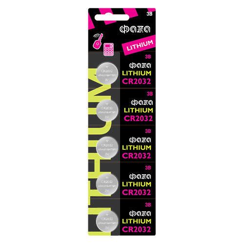 Элемент питания литиевый CR2032 3В BL-5 (уп.5шт) ФАZА 5003217