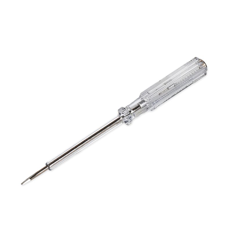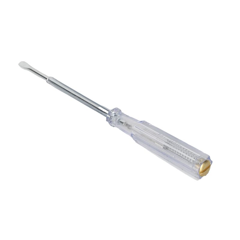 Индикаторная отвёртка 185 мм SHTOK 09051 представляет собой компактное приспособление, которое используется по время проведения электромонтажных работ. Модель оснащается прозрачной ручкой с индикатором внутри, который позволяет определить наличие напряжения на оголенных участках провода или контакта. Параллельный шлиц - SL4. Рабочее напряжение, В: 70-250