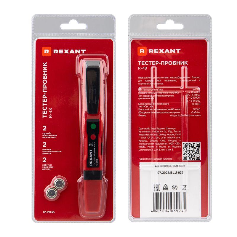 Тестер-пробник REXANT R-48 предназначен для быстрой и эффективной диагностики электрооборудования. Прибор имеет звуковую и световую индикацию. Корпус детектора изготовлен из ударопрочной пластмассы. Основные характеристики: - тестирование сети постоянного тока до 250 B - проверка полярности постоянного тока (DC) от 1.5 до 36 В - тест на разрыв, с регулировкой уровня чувствительности ("0"=0-5 МОм; "L"=0-50 МОм; "Н"=0-100 МОм) - тестирование домашних приборов - бесконтактное тестирование переменного тока (AC) в сети от 70 до 1000 В - контактное тестирование переменного тока (AC) в сети от 70 до 250 В - обнаружение утечки микроволнового излучения: ? 5 мВт на см2 - проверка ламп накаливания, предохранителей и нагревательных элементов на работоспособность - вес: 40 г - размер: 140x20x26 мм - питание: 2х1,5В LR-44 Питание прибора производится от двух батарей 1.5 В (поставляются в комплекте).