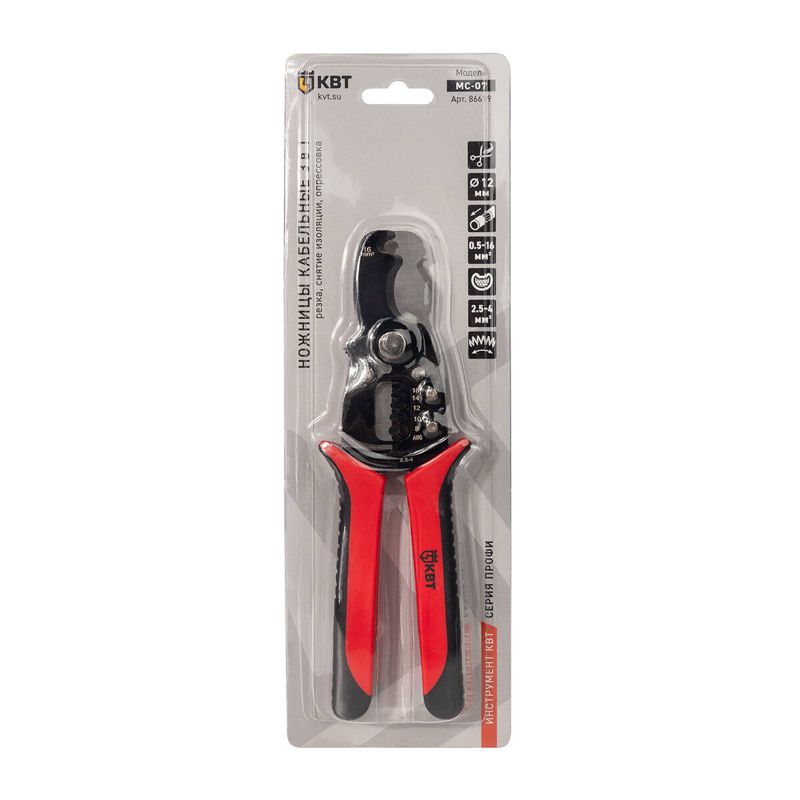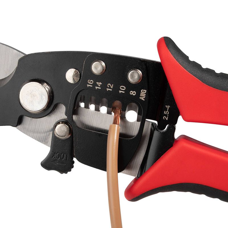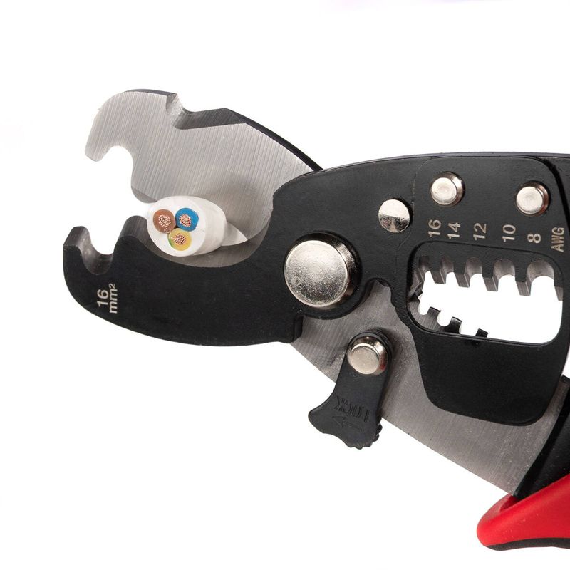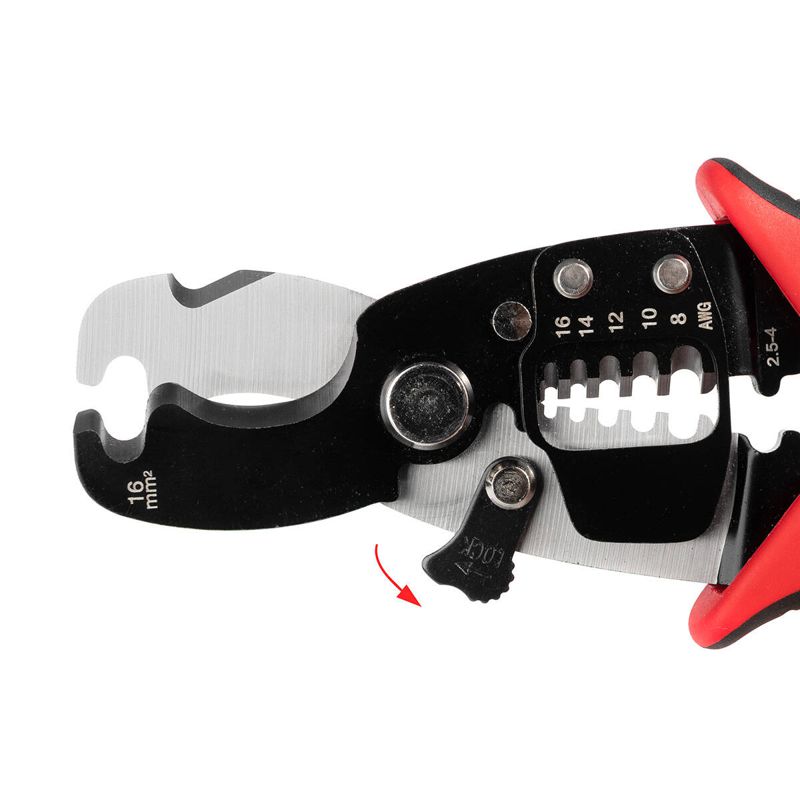 • Специальная выемка на лезвиях ножниц для снятия изоляции с проводов сечением 16 мм2