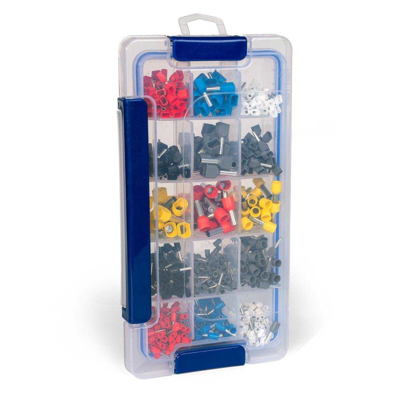 • Коробка выполнена из прочного прозрачного пластика, что позволяет осуществлять визуальный контроль содержимого • Одинарные и двойные втулочные наконечники «КВТ» представлены в одинаковой цветовой гамме стандарта DIN, что облегчает их поразмерную идентификацию • 15 отделений с переставными перегородками для оптимальной организации размеров ячеек • Самые популярные размеры одинарных и двойных втулочных наконечников • Габариты коробки: 230x120х37 мм • Вес набора: 300 г