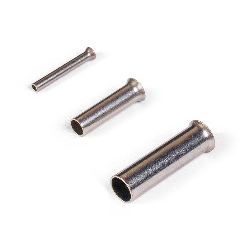 • Предназначены для оконцевания методом опрессовки многожильных медных проводников. Трансформируют концы многожильных проводов в монолитные штифты • Размеры втулок НШВ рассчитаны для монтажа одного проводника соответствующего сечения. Однако, поскольку пластмассовая ограничительная манжета отсутствует, втулки могут быть также использованы для соединения двух и более проводников • Завод жилы во втулку осуществляется со стороны раструба • Материал коннектора: медь марки М1 • Покрытие: электролитическое лужение • Температурный диапазон эксплуатации: от -55 °C до +135 °C • Благодаря расширенному температурному диапазону, наконечники НШВ рекомендованы к применению для проводов с термостойкой изоляцией из кремний-органической резины марок ПРКА, ПРКС, ПВКВ, РКГМ • Втулки без манжеты незаменимы для оконцевания проводов с толстой изоляцией (например, кабелей с резиновой изоляцией КГ и КОГ) • Наконечники НШВ представлены со стандартной длиной втулки. Под заказ возможно исполнение наконечников НШВ с увеличенной длиной втулки