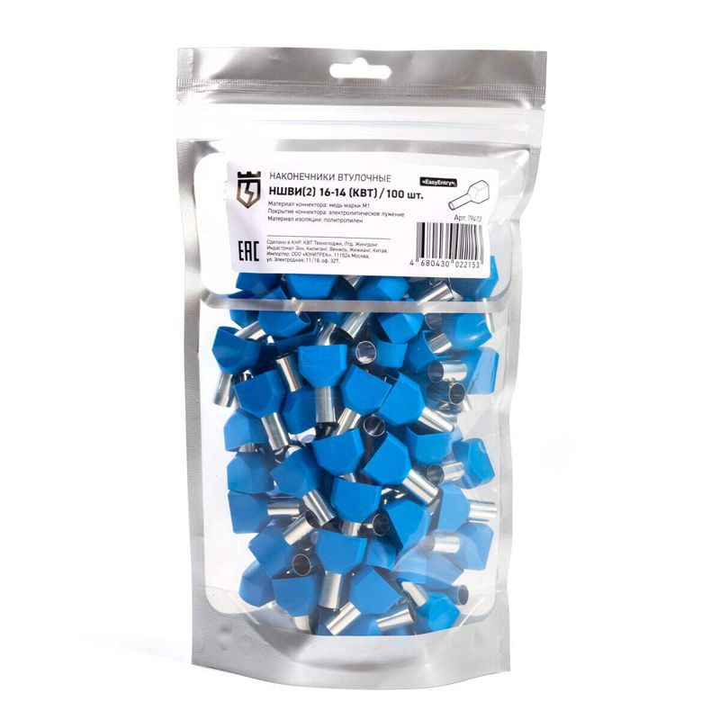 • Для монтажа сдвоенных проводов одинакового сечения • Предназначены для оконцевания методом опрессовки гибких многопроволочных медных проводников. Трансформируют концы многожильных проводов в монолитные штифты • Современная альтернатива обязательному облуживанию концов многожильных проводников при подсоединении к клеммам • Размеры изолированных манжет и втулок наконечников НШВИ(2) рассчитаны для монтажа и подключения двух проводников • В условиях высокой плотности монтажа двойные втулочные наконечники являются единственно возможным контактным соединением двух проводников • Материал коннектора: медь марки М1 • Покрытие коннектора: электролитическое лужение • Материал изоляции: полипропилен. Не содержит галогенов • Термостойкость изоляции: 105 °C • Цвет изолирующих манжет выполнен в соответствии с цветовой маркировкой DIN 46228, часть 4 • Одинарные и двойные втулочные наконечники «КВТ» представлены в одинаковой цветовой гамме стандарта DIN, что облегчает их поразмерную идентификацию • Коническая форма манжеты, тип «Easy Entry», облегчает заведение многожильного провода внутрь медной втулки • Обжим провода поверх медной втулки