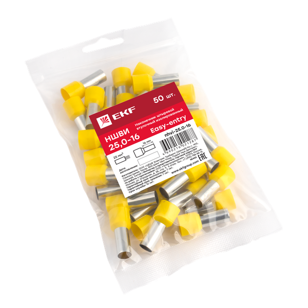 —Наконечник штыревой втулочный изол. НШвИ 25.0-16 (уп.50шт) EKF nhvi-25.0-16