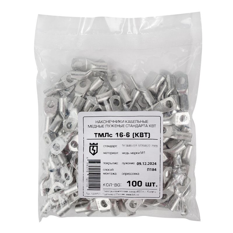 Наконечник луженый медный ТМЛс 16-6 КВТ 60910