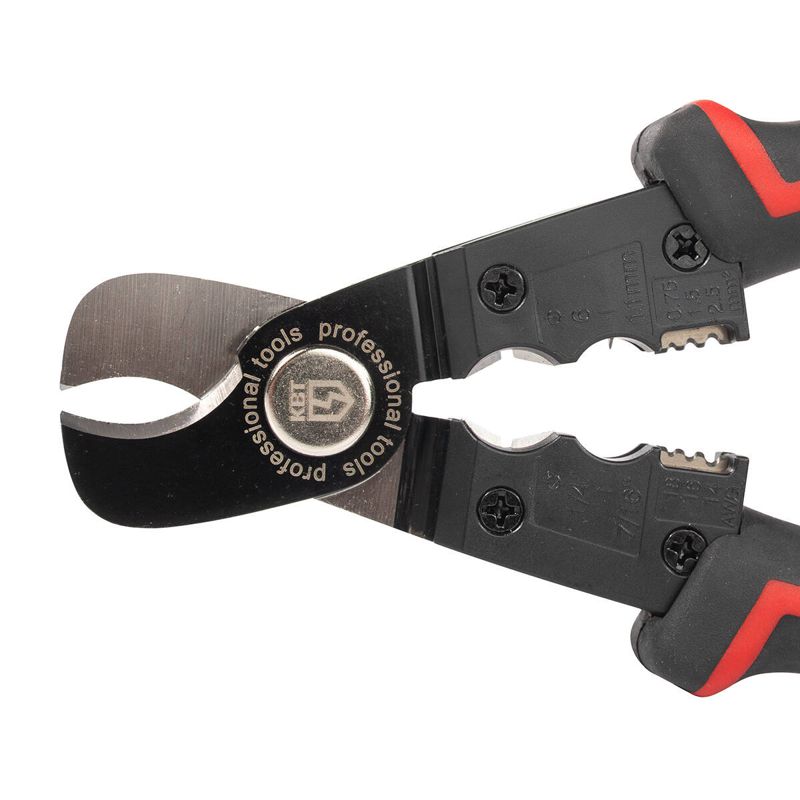 • 4 в 1: • резка проводов ? до 10 мм • снятие жильной изоляции с проводов сечением от 0.5 до 2.5 мм2 • поперечная разделка оболочки круглых кабелей ? от 6 до 14 мм • продольная разделка оболочки круглых кабелей ? от 6 до 11 мм • Трехпозиционные прецизионно заточенные лезвия для зачистки проводов: • гнездо «0.75» для проводов сечением 0.5–0.75 мм2 • гнездо «1.5» для проводов сечением 1–1.5 мм2 • гнездо «2.5» для проводов сечением 2.5 мм2 • Двухкомпонентные нескользящие рукоятки • Скоба для блокировки рукояток • Возвратная пружина • Вес инструмента: 200 г • Длина инструмента: 185 мм