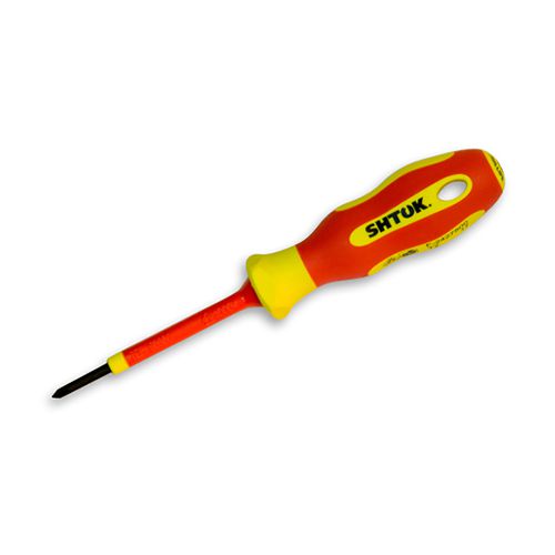 Диэлектрическая отвертка Ph0х60 мм SHTOK 09316 для работ с крепежом, электроизолирована до 1000V. Двухслойная изоляция стержня гарантирует максимальный уровень безопасности при работе под напряжением с ненарушенным внешним изолирующим покрытием красного цвета. Как только проявился нижний слой желтого цвета, работы под напряжением необходимо прекратить! Согласно ГОСТ, периодические испытания инструментов с многослойной изоляцией не проводят (ГОСТ 11516-94, п. 4.3.1.). Сертифицирована по нормам VDE (IEC 60900).