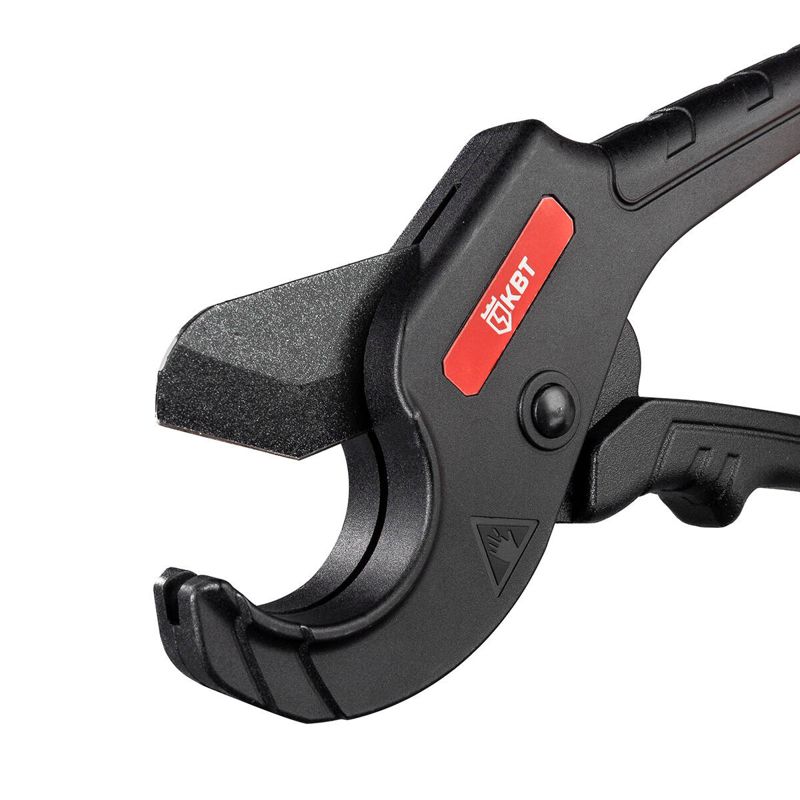 • Ножницы-труборез для резки ПВХ, полипропиленовых и металлопластиковых труб • Диапазон резки: пластиковые трубы ? до 32 мм • Лезвия ножниц выполнены из нержавеющей стали 5Cr13MoV с тефлоновым покрытием • Нержавеющая сталь 5Cr13MoV широко используется для изготовления кухонных ножей, высококачественных ножниц, складных ножей, а также охотничьих ножей с фиксированным лезвием • Твердость лезвия HRC 50...52 • Толщина обуха лезвия: 2 мм • Чистый рез без замятий за счет V-образного лезвия • Материал ножниц: • корпус: прочный армированный нейлон • подвижная рукоятка: алюминиевый сплав • Открытие лезвия в любой момент нажатием на подвижную рукоятку в обратном направлении • Металлическая скоба блокировки рукояток для хранения и транспортировки • Эргономичные рукоятки с небольшим раскрытием • Вес: 145 г • Длина: 195 мм