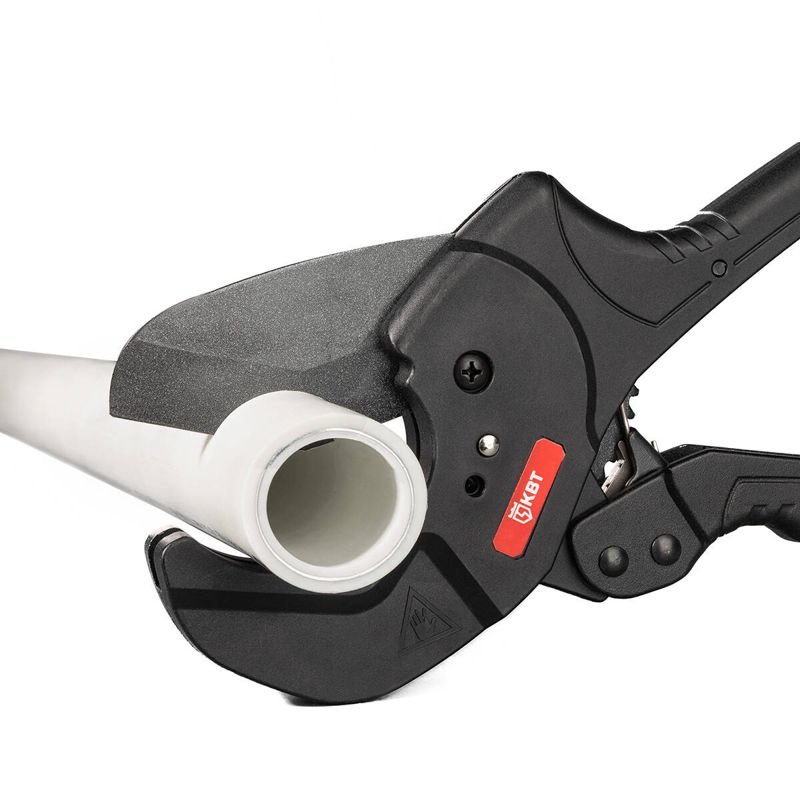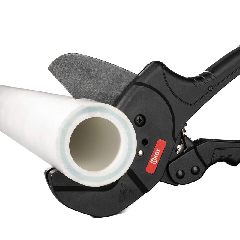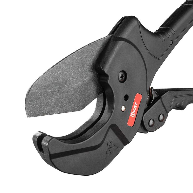 • Ножницы-труборез для резки ПВХ, полипропиленовых и металлопластиковых труб • Диапазон резки: пластиковые трубы ? до 64 мм • Лезвия ножниц выполнены из нержавеющей стали 5Cr13MoV с тефлоновым покрытием • Нержавеющая сталь 5Cr13MoV широко используется для изготовления кухонных ножей, высококачественных ножниц, складных ножей, а также охотничьих ножей с фиксированным лезвием • Твердость лезвия HRC 50...52 • Толщина обуха лезвия: 3 мм • Чистый рез без замятий за счет V-образного лезвия • Материал ножниц: • корпус: прочный армированный нейлон • подвижная рукоятка: алюминиевый сплав • Резка с минимальным усилием за счет храпового механизма • Открытие лезвия в любой момент нажатием на подвижную рукоятку в обратном направлении • Металлическая скоба блокировки рукояток для хранения и транспортировки • Эргономичные рукоятки с небольшим раскрытием • Вес: 380 г • Длина: 245 мм