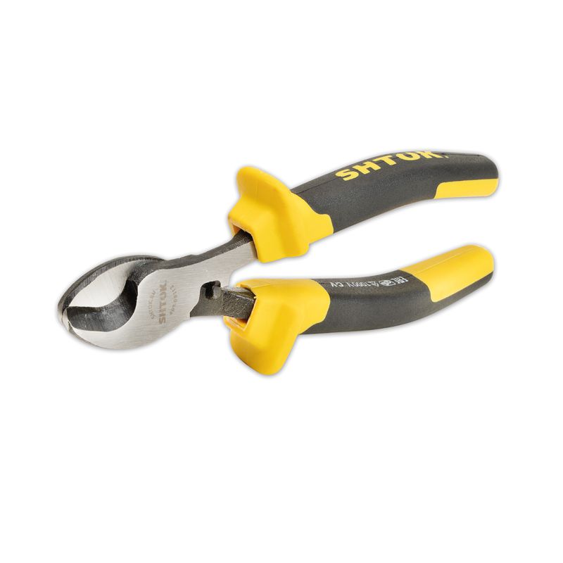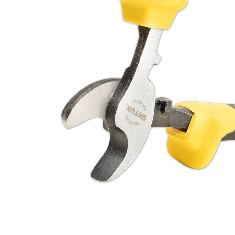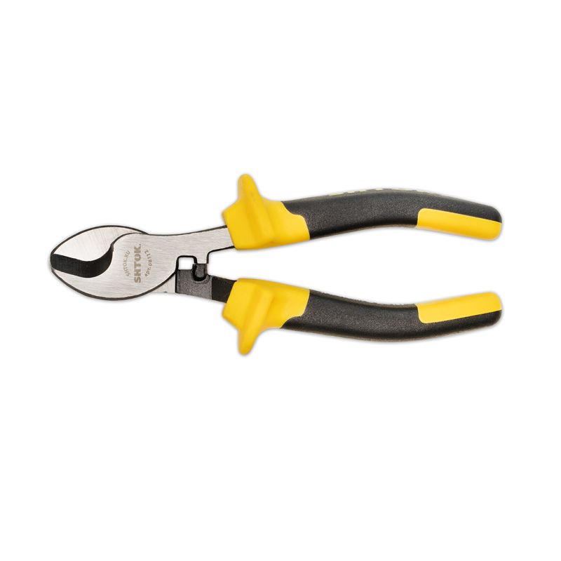 Кабелерез SHTOK 08112 используется в сборочном производстве. Рукоятки из двухкомпонентного пластика с упорами обеспечивают надежность захвата и удержания инструмента во время работы. Возможна резка одножильного и многожильного алюминиевого или медного кабеля.