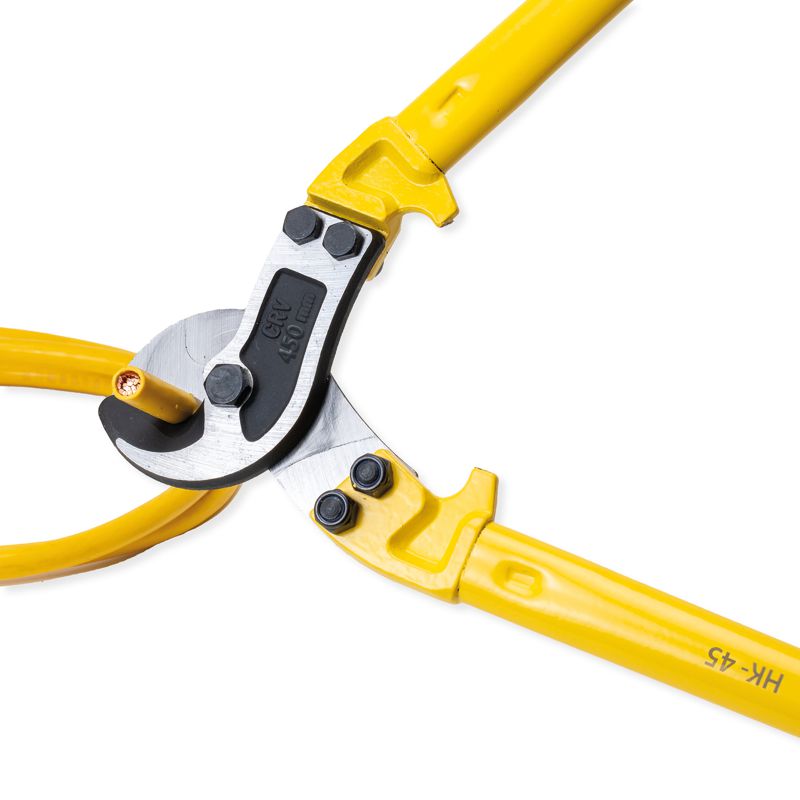 Ножницы кабельные НК- 45 предназначены для резки многожильных кабелей. Марка стали режущей части: CR-V Резка кабеля, Al, мм: O25 Резка кабеля, Cu, мм: O15 Твёрдость режущей части, HRC: 58-62 (!) Не предназначены для работ под действующим напряжением (!) Не предназначены для резки кабеля со стальной жилой или сердечником