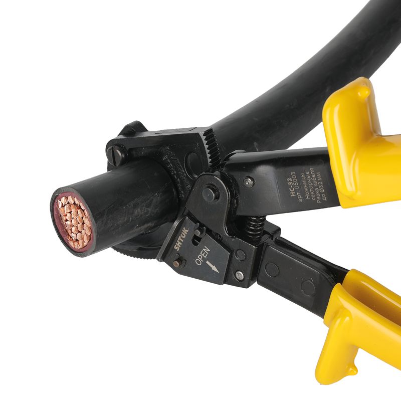 Секторные ножницы SHTOK НС-32 05003 обеспечивают резку кабеля всех типов. Имеют небольшие размеры для удобной работы и компактного хранения. Конструкция обеспечивает мгновенную разблокировку лезвий в любой момент времени. Предназначены для использования во время ремонтных работ, на станциях технического обслуживания автомобилей. Диаметр перерезаемого кабеля, мм: 32; Сечение перерезаемого Cu кабеля, мм2: 4х50; Сечение перерезаемого Al кабеля, мм2: 4х70; Особенности ножниц SHTOK 5003 Комфорт Конструкция секторных ножниц SHTOK НС-32 05003 обеспечивает разблокировку лезвий в любой момент работы.