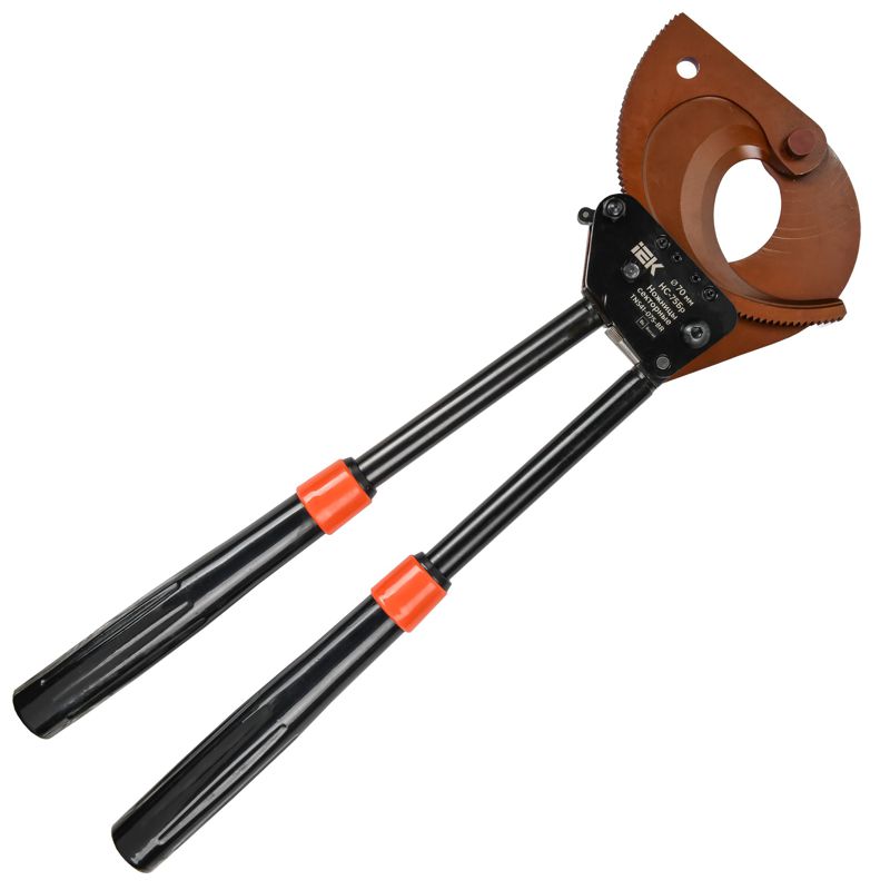 Ножницы секторные НС-75Бр IEK для резки медного и алюминиевого кабеля с бронированием стальной проволокой, максимальным диаметром до 75мм (4х120мм2). Телескопические ручки. Подходит для: диаметр перерезаемого кабеля 75 мм; сечение перерезаемого Аl/Cu кабеля 4х120мм2.