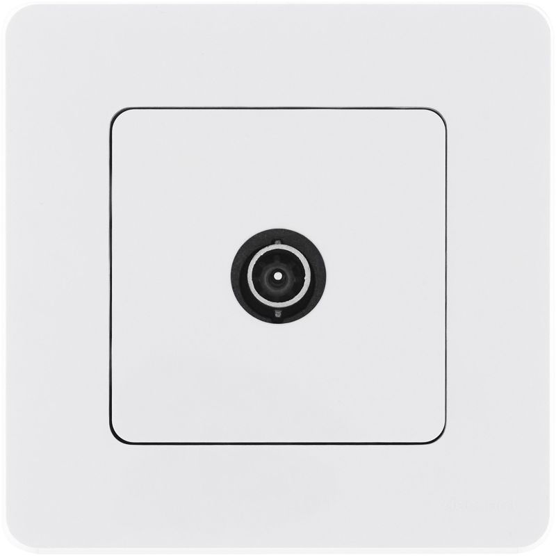 Розетка телевизионная для скрытого монтажа Inspiria, оконечная для схемы "шлейф", затухание 10дБ, 4-862МГц, цвет "Белый". Предназначена для подключения нескольких ТВ приемников к антенне, используется в схеме "шлейф" и устанавливается в конце линии.