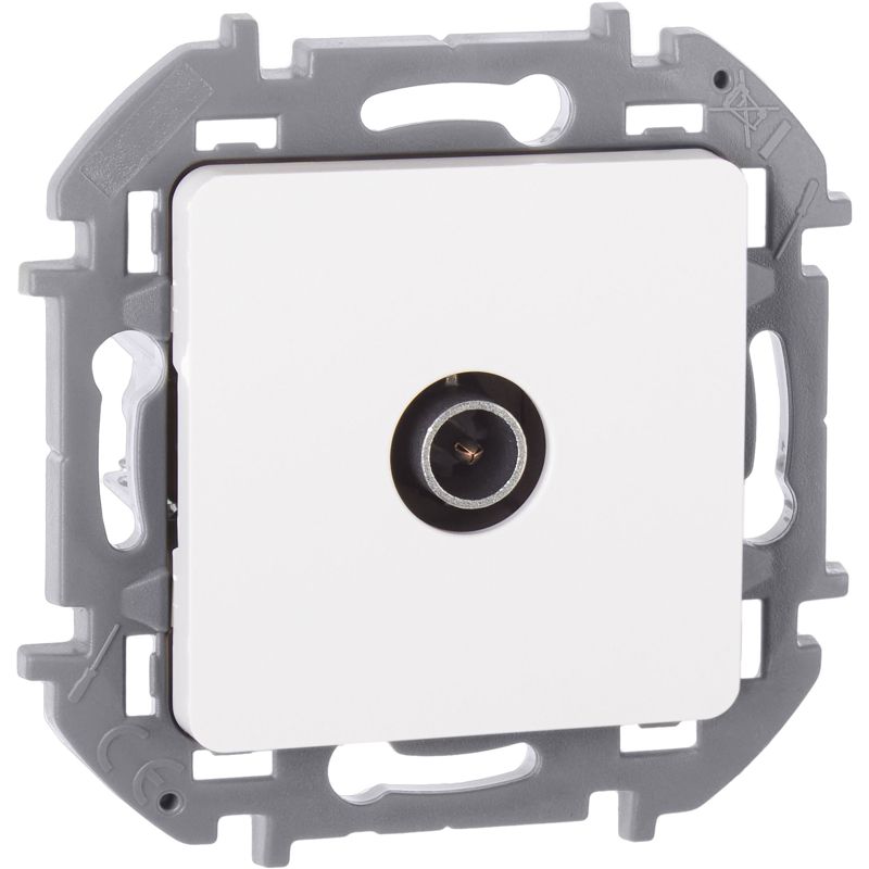 Розетка телевизионная для скрытого монтажа Inspiria, для схемы "звезда", затухание 1дБ, 4-2400МГц, поддержка обратного питания для активных антенн до 500мА, цвет "Белый". Предназначена для подключения одного ТВ приемника к антенне, а также для организации телевизионной сети по схеме "звезда", когда к каждому телевизору прокладывается своя линия от источника сигнала.
