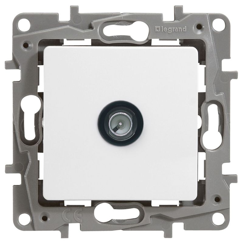 TV-розетка тип "звезда" ETIKA.Используется для подключения одного ТВ приемника к антенне, а также для организации телевизионной сети по схеме "звезда", когда к каждому телевизору прокладывается своя линия от источника сигнала.