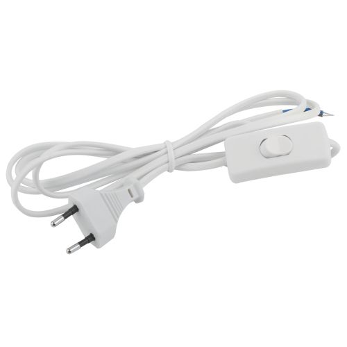 Шнур для бра UX-ШВВП-S-1,8m-W без заземления, провод ШВВП с сечением 2х0,5, длина 1,8 м, цвет - белый. Провод шнура питания состоит из скрученных жил с надежной ПВХ оболочкой. На конце шнура имеется штепсельная вилка. Изделие предназначено для комплектации или ремонта электрических бытовых приборов.