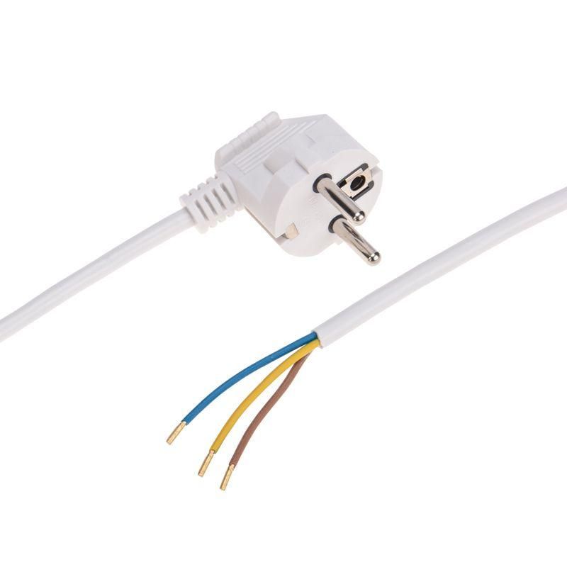 Электрический шнур предназначен для подключения бытовых приборов и осветительной техники к сети. Используется при ремонте или замене штатного шнура питания. Жилы изготовлены из меди, что обеспечивает высокую токопроводимость. Заземление обеспечивает защиту от электрического замыкания и повышает безопасность использования. Литая неразборная вилка евростандарта гарантирует стабильное подключение и надежную фиксацию в розетке. Угловая форма вилки облегчает подключение в ограниченном пространстве и уменьшает износ кабеля. Шнур имеет зачищенные контакты, что экономит время и упрощает процесс подключения.