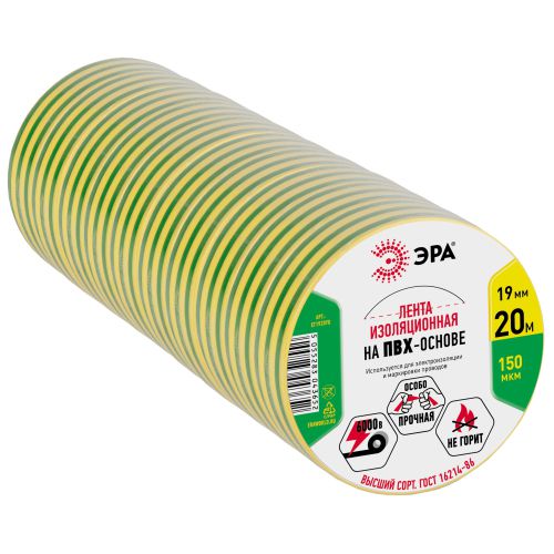 Изолента ПВХ 19ммх20м желт./зел. ЭРА C0036545