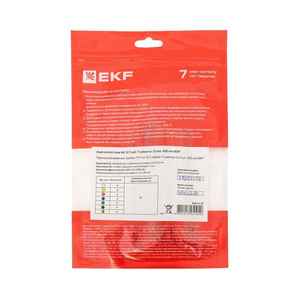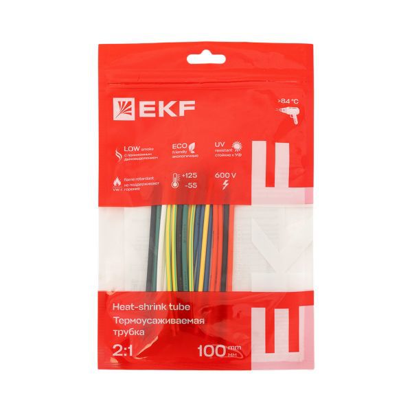 —Набор трубок термоусадочных ТУТ нг тонкостен. 2/1 (7 цветов по 3шт 100мм) EKF tut-n-2