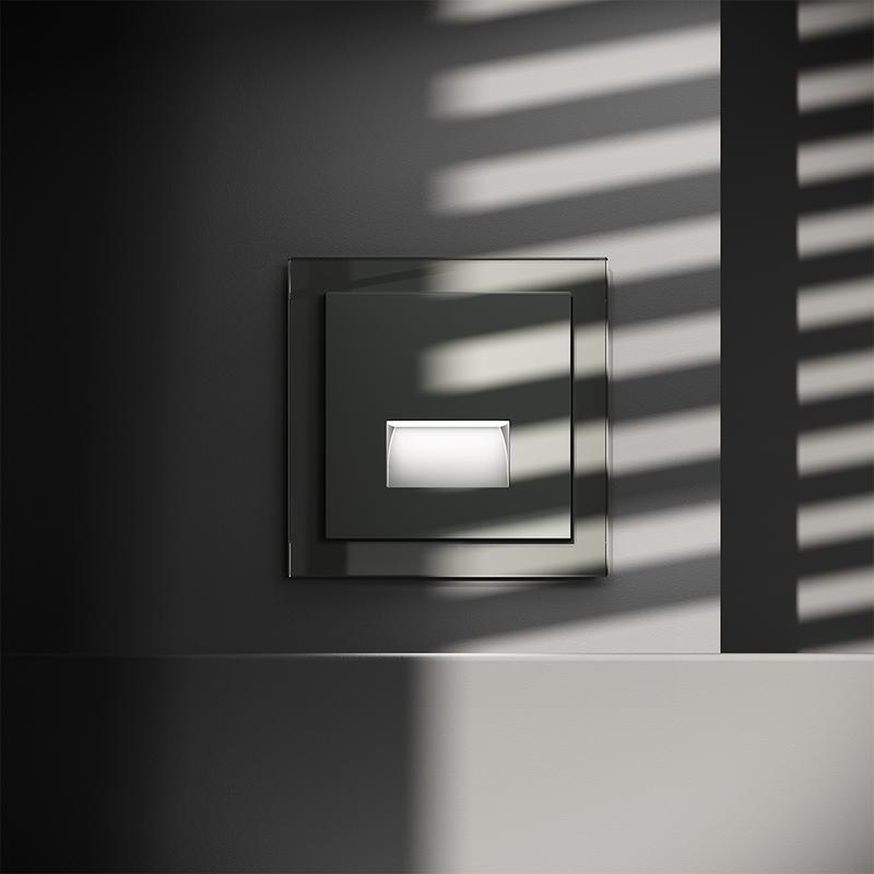 Место установки. Подсветки предназначены для освещения ступеней лестниц, коридоров, спален и других помещений. Корпус. Устройства выполнены в минималистичном стиле с утопленным светодиодом в корпусе, который незаметен для глаз и создает эффект света, исходящего из стены. Установка подсветок производится в стандартные подрозетники и подходит для всех рамок серии S70 от Voltum. Конструктивные особенности. Подсветки на базе светодиодов SMD со встроенным датчиком движения располагают тремя режимами работы (3300K/4200K/6500K) и могут использоваться как ночник. Выбор цветовой температуры осуществляется прикосновением к сенсорной кнопке на панели (выбранный режим фиксируется в памяти устройства). Подсветка автоматически отключается через одну минуту после выхода объекта из зоны действия датчика движения.